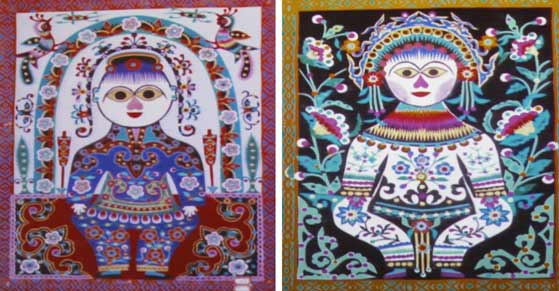 陕西延川剪纸 《拉手娃娃》(左) 《娃娃坐莲花》(右)